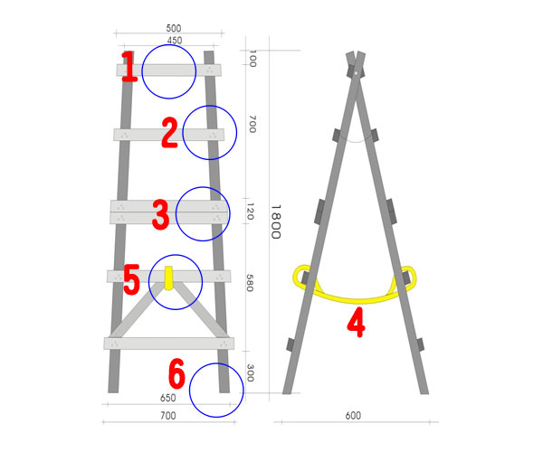 4、架梯雙腿之間的連接材料應(yīng)采用直徑12-15mm的尼龍繩,其長(zhǎng)度以保證雙腿之間的最遠(yuǎn)距離控制在600mm以?xún)?nèi)。