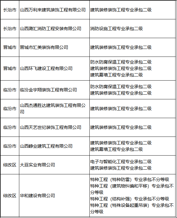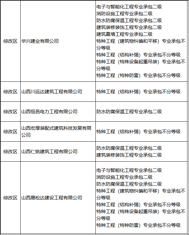 2. 山西:58家建企未提交整改材料或仍不滿足資質標準,撤回其相關資質。