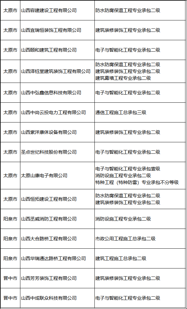 山西省住建廳發布《山西省住房和城鄉建設廳關于撤回大同雙洋建筑工程有限公司等58家建筑業企業資質的公示(第1215號)》。其中:多為二級資質。